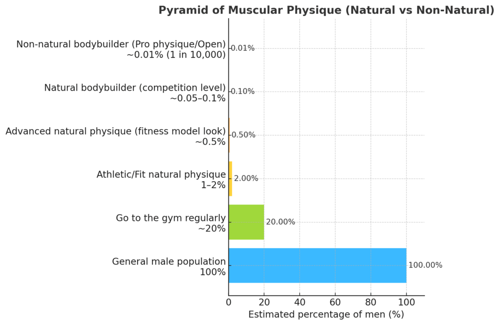 Why is that? ๐ค Only an extremely minute percentage of humans are capable of attaining that level of form. The foremost reason is discipline ๐๏ธ, then genes ๐งฌ, then the fact most of the fitness community also supplement ๐ to get it. There are some lucky ones who can do it, yes, but those are but an extremely minute percent of the population. And so social media ๐ spotlights them so muchโbecause often it comes at a great cost in money ๐ธ, time โฐ, and sacrifice ๐.